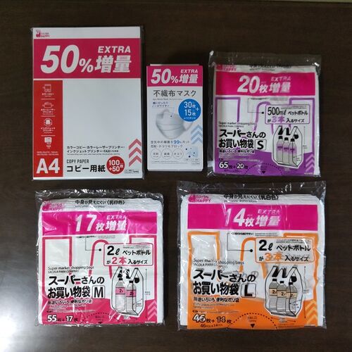「ダイソー」は今年創業50周年を迎えます。お客様への感謝の感謝を込めた還元企画として3月1日より増量キャンペーンを実施中!数量限定なので早めがいいと思い、今日行ってきました。 【ダイソー】50周年増量キャンペーンで購入した商品 不織布マスク(30…