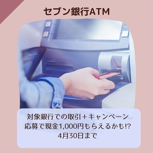 セブン銀行ATMご利用感謝キャンペーンは、4月30日(土)までです。 セブン銀行ATMご利用感謝キャンペーン キャンペーン期間 キャンペーン概要 応募方法 対象となる取引 キャンペーン参加銀行 キャンペーン応募方法 ①QRコード読み取り ②シリアルナンバー送信 ③…