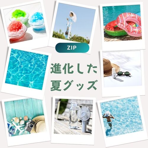 7月15日(火)の『ZIP特集』。いつの間にか進化した「夏グッズ」をご紹介します。 進化した夏グッズ ムーンバット REIKYAKU 冷却 パラソル ウォーターフロント Sa傘 アネッサ パーフェクトUV ブラッシュパウダー かんたん空気栓採用浮輪 ドウシシャ 電動わた雪…