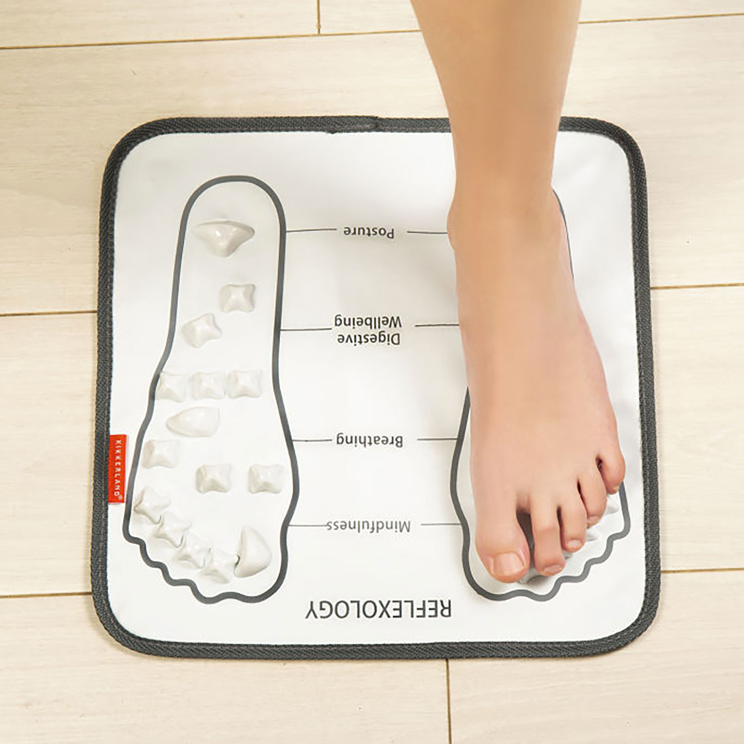 洗面所やリビング、書斎などお好きな場所でお好きなときに気軽にリフレッシュしていただけます。見た目にいかにも感がなく、自宅に置きやすいキッカーランドならではのデザインの良さも魅力。運動不足になりがちな忙しい方へのギフトにもおすすめ。薄手なので丸めてコンパクトに収納できる普段づかいにぴったりなマッサージフットマットです。
