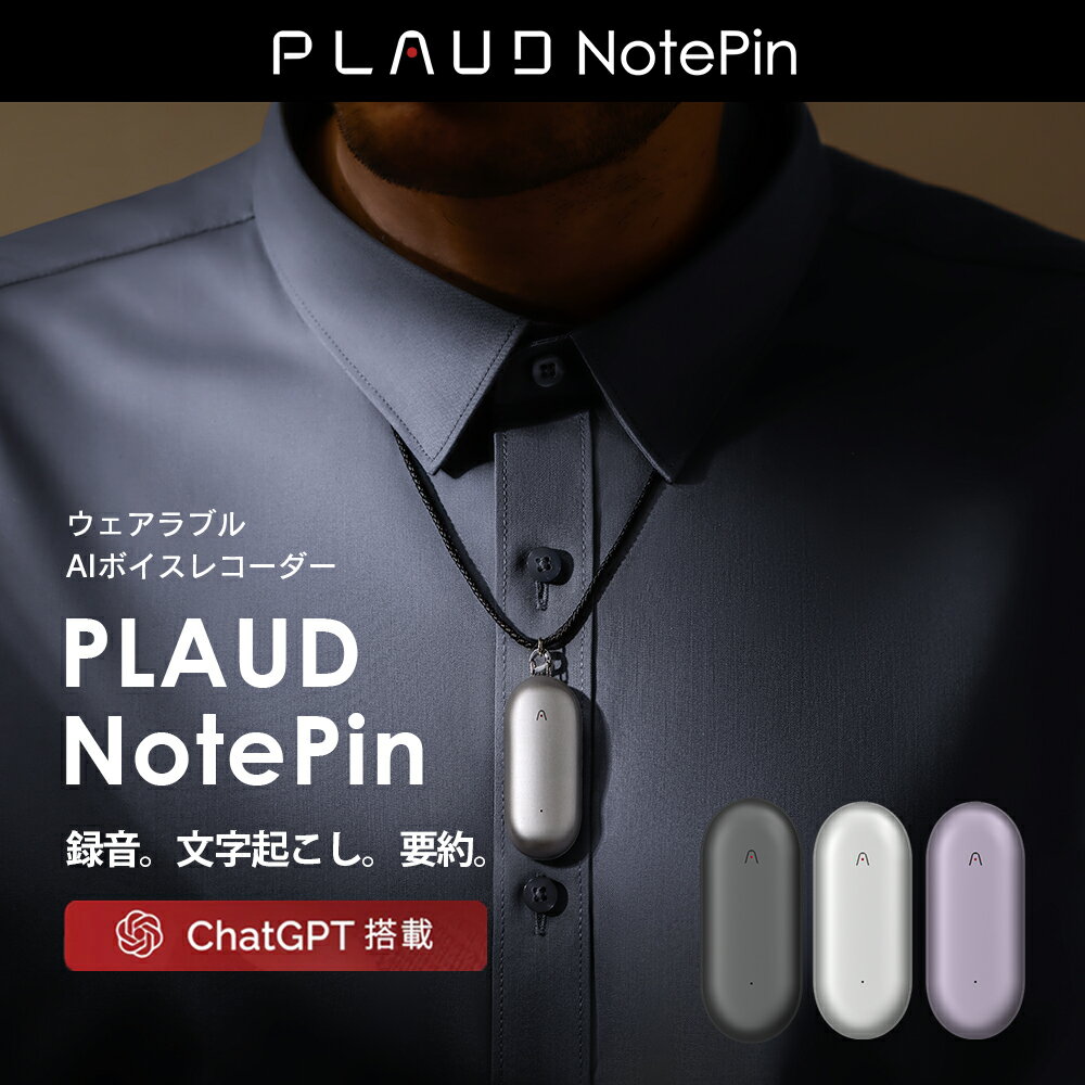 AI搭載ボイスレコーダー。体に装着し仕事や日常の会話を録音すると、AIが会話を自動で文字起こし。第二の脳として記録と記憶をしてくれます。