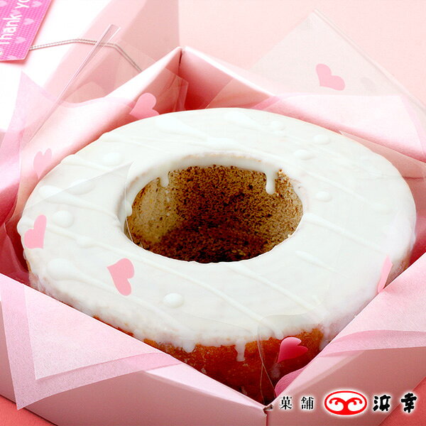 白いチョコレートで化粧をほどこした、お祝い事にぴったりのかわいらしいバウムクーヘン
