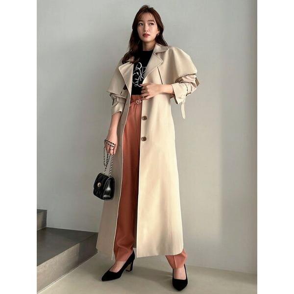 羽織るだけでパッとオシャレ感アップするミドル丈のトレンチコートです。